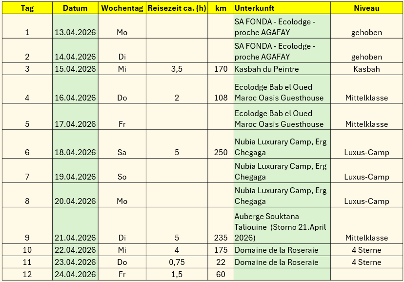 Auf den spirituellen Marokkoreisen entsteht ein Raum für Begegnung, Austausch und stille Einkehr. Sie laden dazu ein, den eigenen inneren Quell zu entdecken und die äußere Welt als Spiegel der inneren Wirklichkeit zu erfahren. Jeder Schritt in der Weite der Landschaften und im Spiel von Licht und Schatten wird so zu einer Reise nach innen – eine Einladung, gemeinsam zu erkunden, zu lernen, zu wachsen und äußere Erfahrungen mit inneren Einsichten zu verbinden.