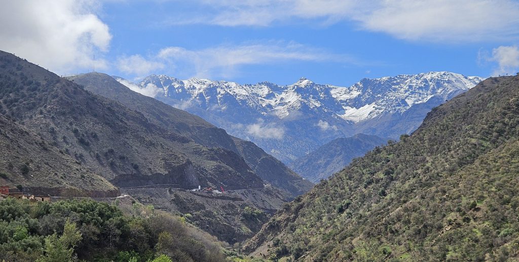 Nach dem Frühstück im Hotel werden wir von unserem Fahrer abgeholt und fahren im Minibus durch die fruchtbare Ebene des Haouz dem Hohen Atlas entgegen, der sich bei klarer Sicht von Marrakesch aus als beeindruckende Gebirgskulisse erhebt.